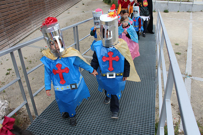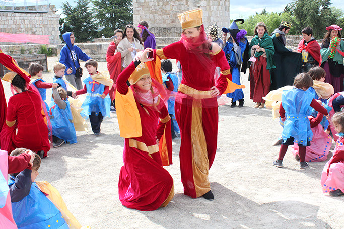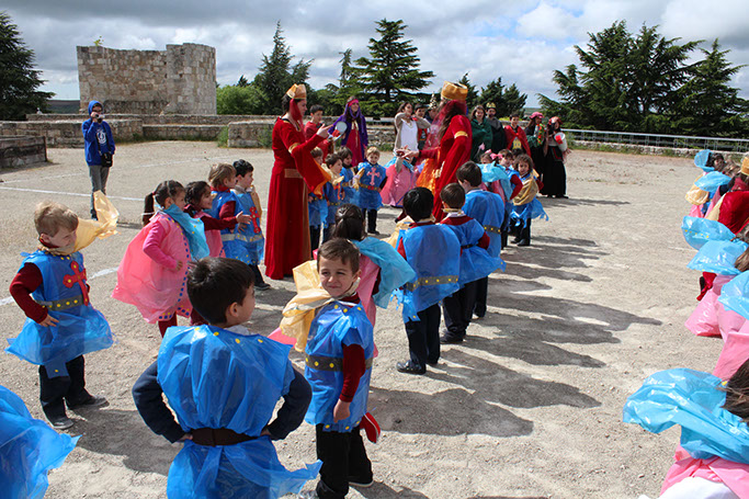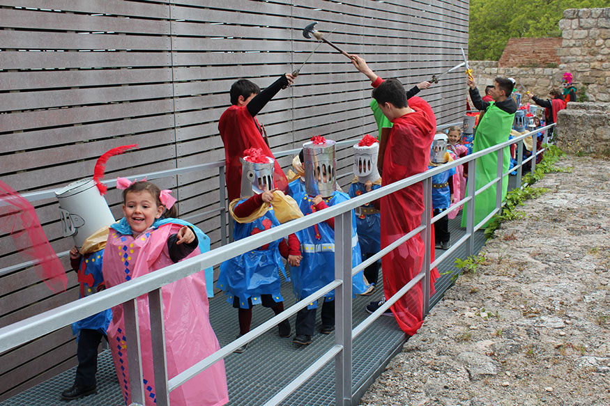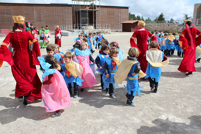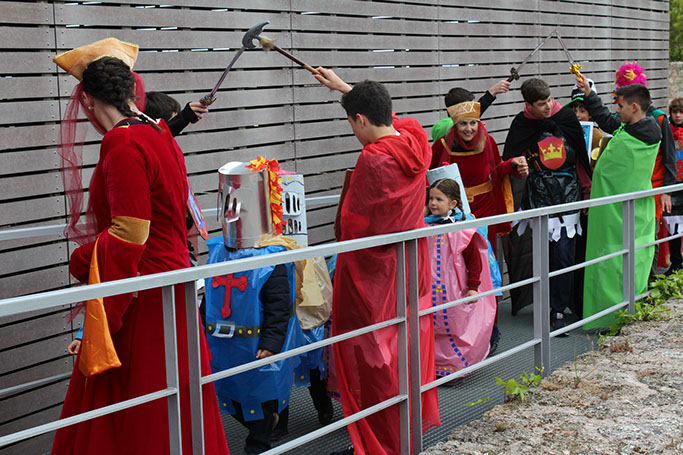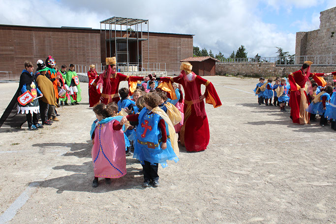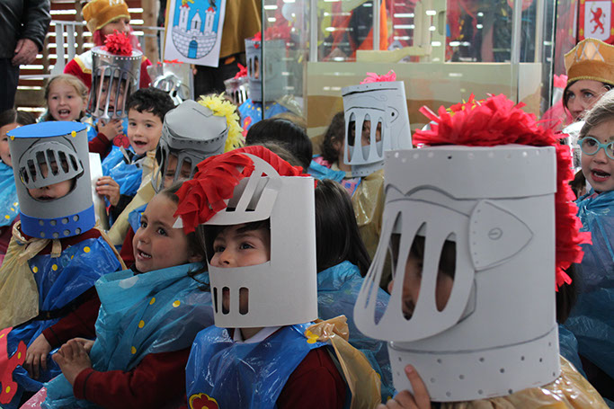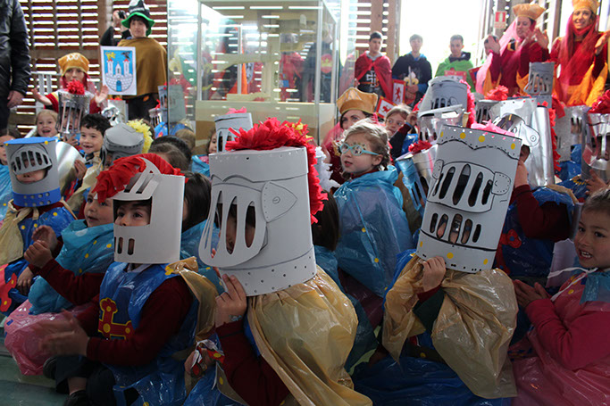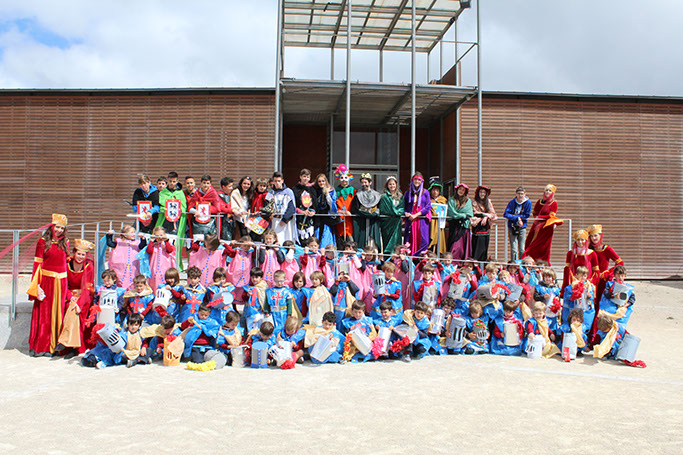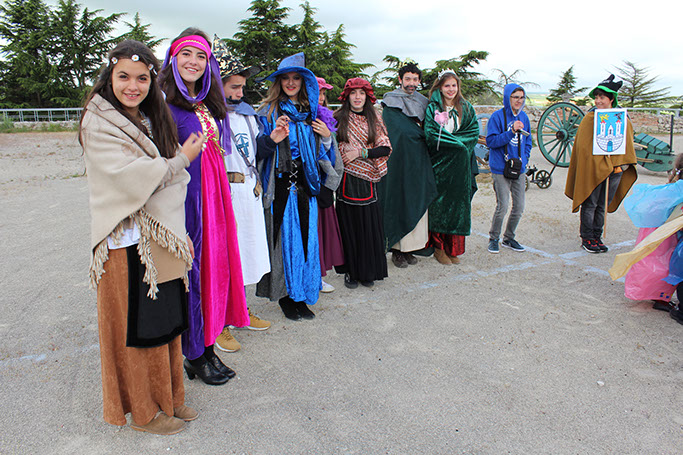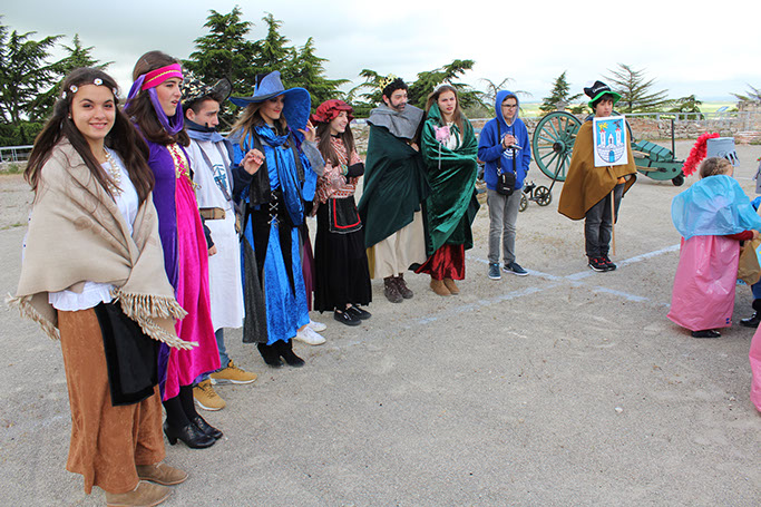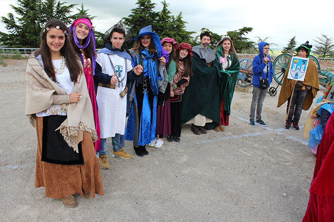Todos los alumnos vestidos con sus armaduras de caballeros y sus vestidos de damas se pusieron rumbo al Castillo.