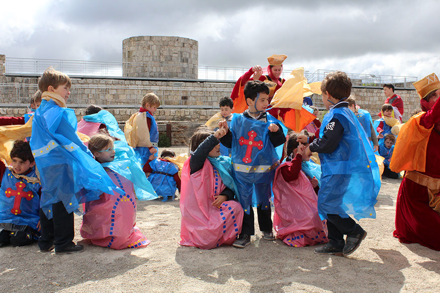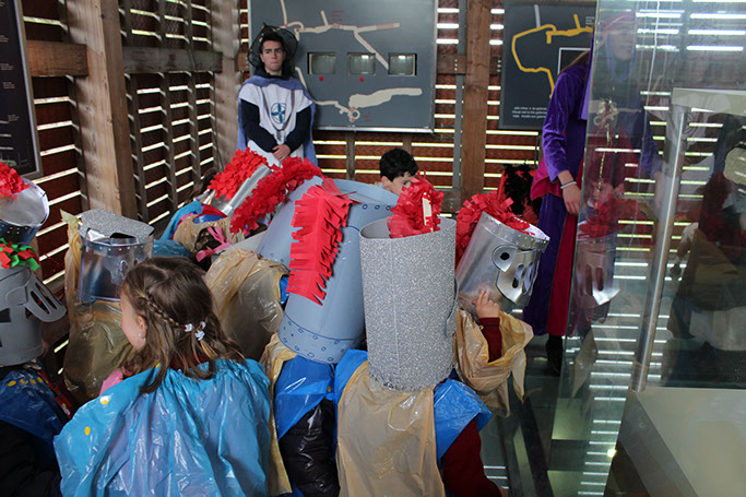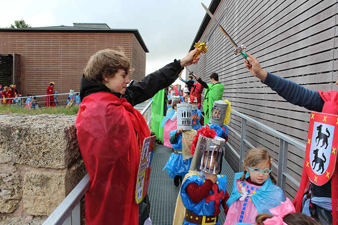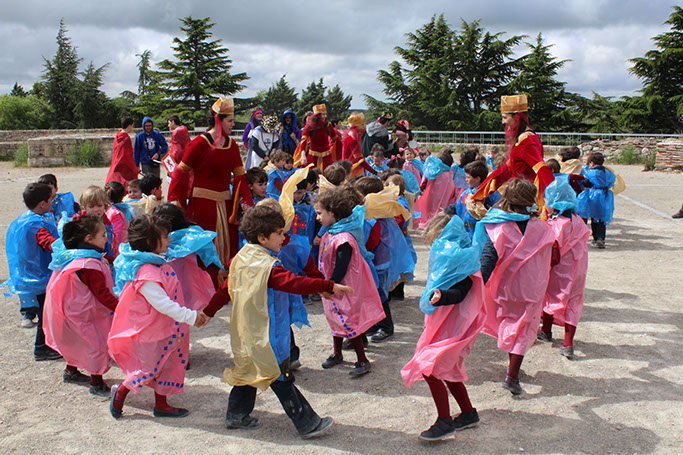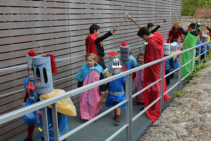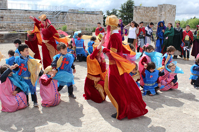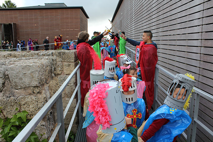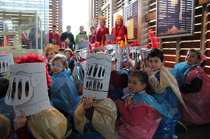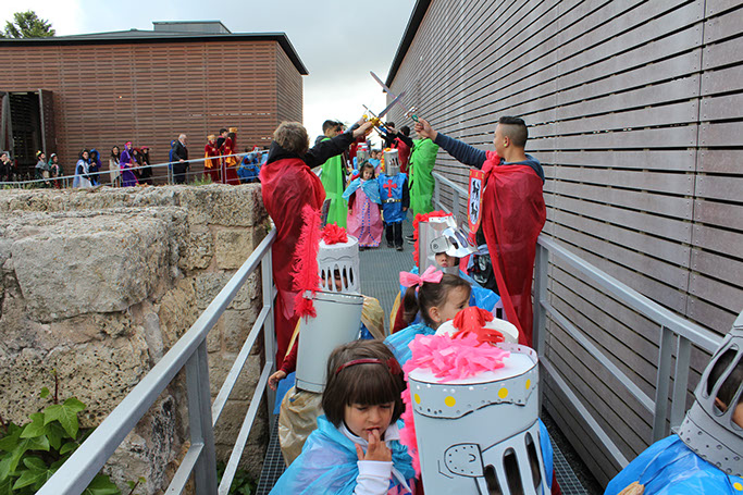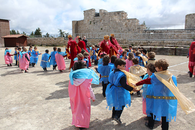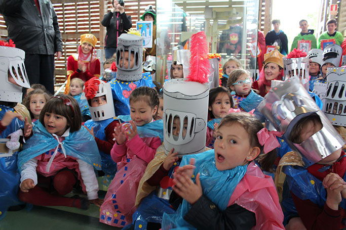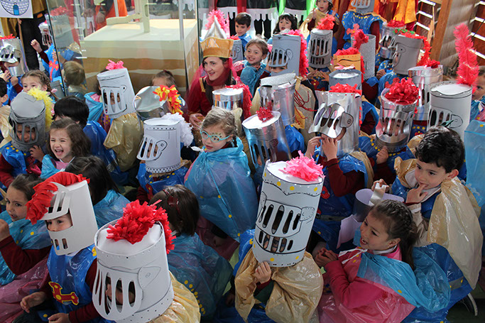 Todos los alumnos vestidos con sus armaduras de caballeros y sus vestidos de damas se pusieron rumbo al Castillo.
