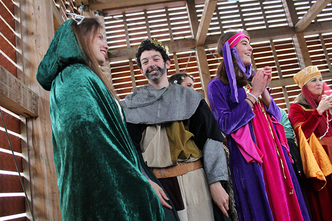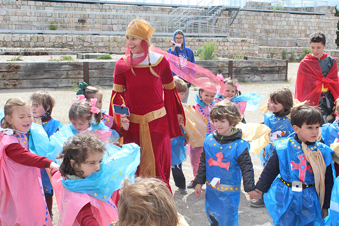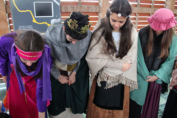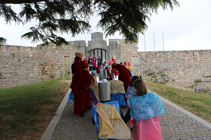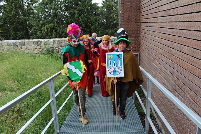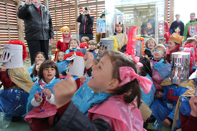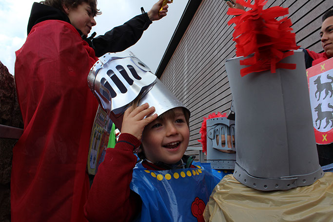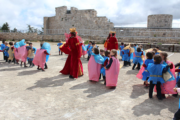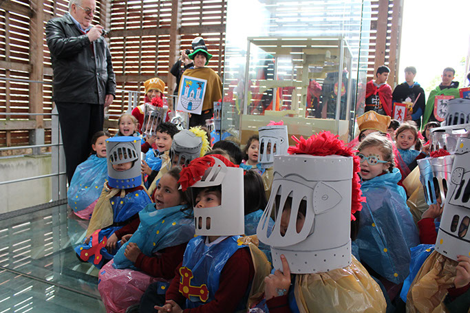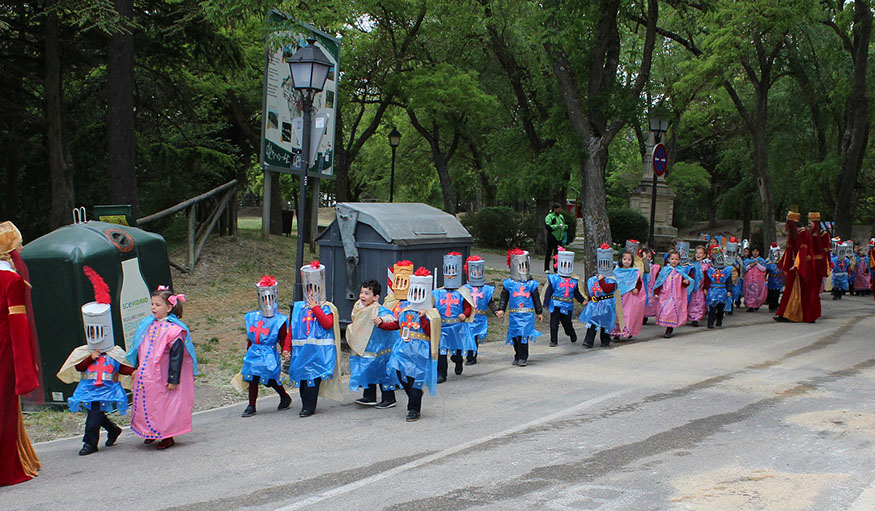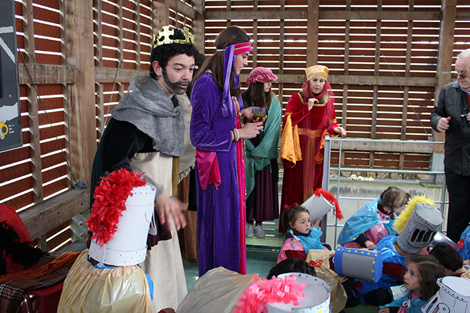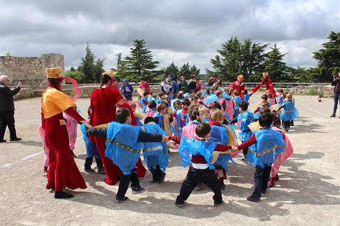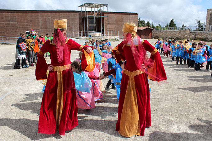 Todos los alumnos vestidos con sus armaduras de caballeros y sus vestidos de damas se pusieron rumbo al Castillo.