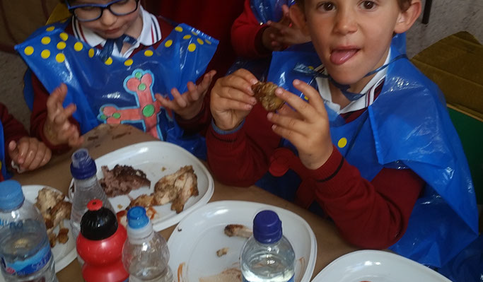 Y al llegar al colegio, como en toda fiesta medieval que se precie, un gran banquete nos estaba esperando.