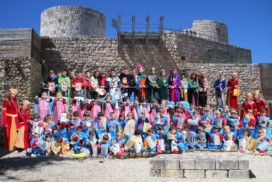 Al finalizar la celebración de la investidura y antes de poner rumbo al cole, nos hicimos la foto de grupo con todos los habitantes del Castillo.
