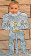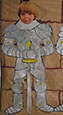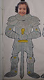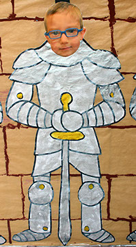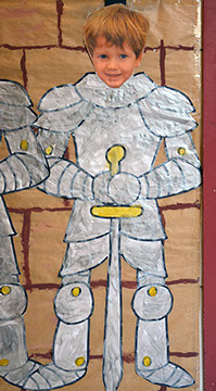 En nuestro caso se han colocado las armaduras con las caras de los alumnos en las paredes de nuestro castillo (pasillo de 2º de infantil). Este es el elemento real, que al ser enfocado con nuestro dispositivo móvil nos muestra un video del alumnos contando la historia y características del escudo de su apellido.