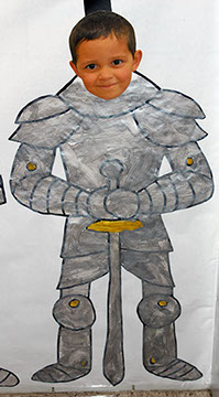 Se han diseñado una serie de actividades en las que los alumnos de 2º infantil tienen que realizar múltiples tareas como colorear la armadura de su personaje, dibujar y colorear el escudo de su familia, memorizar la heráldica de su apellido, interpretar dicha heráldica y grabar un video, etc